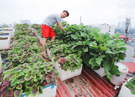 Một khoảng vườn rau trên sân thượng.
